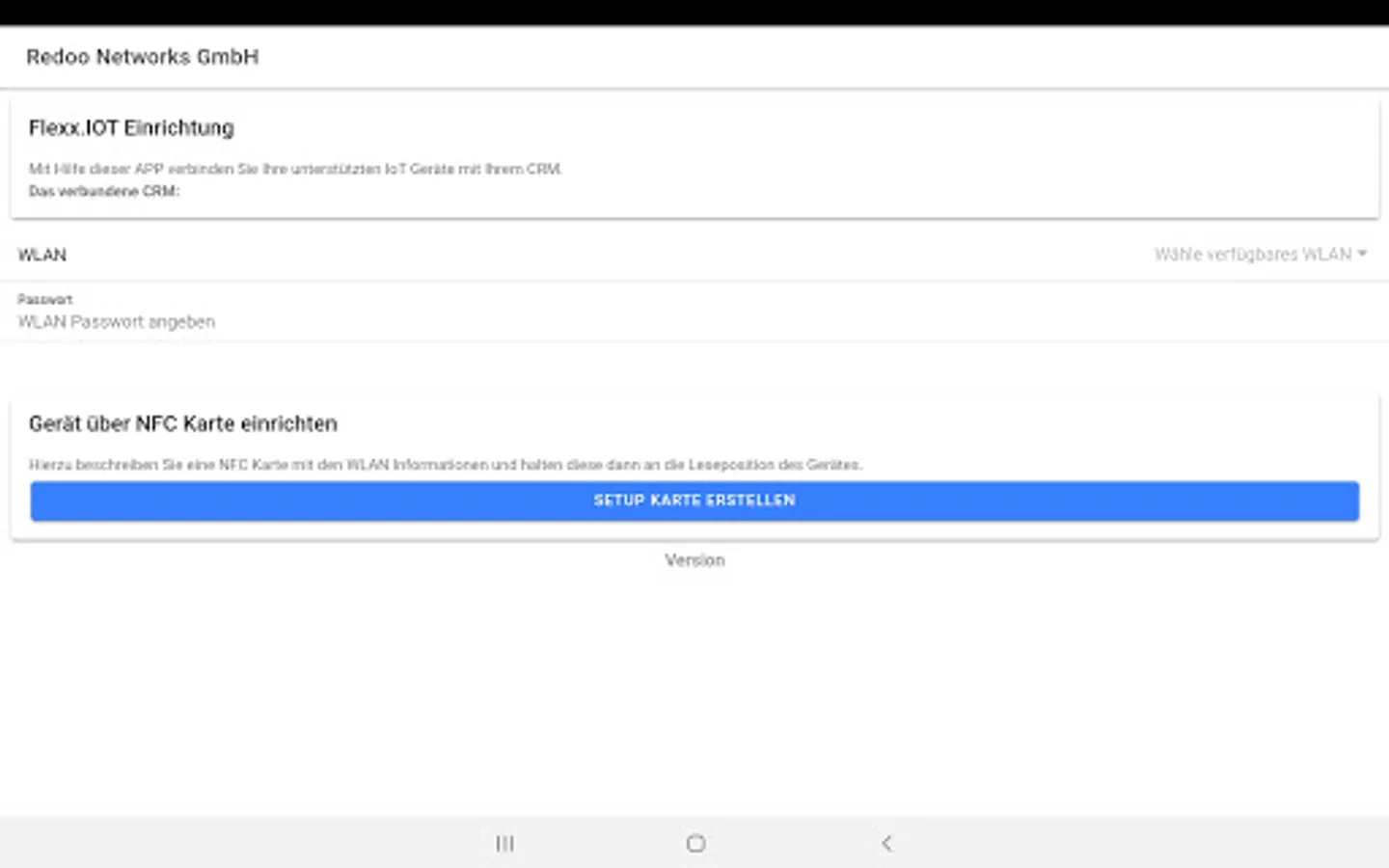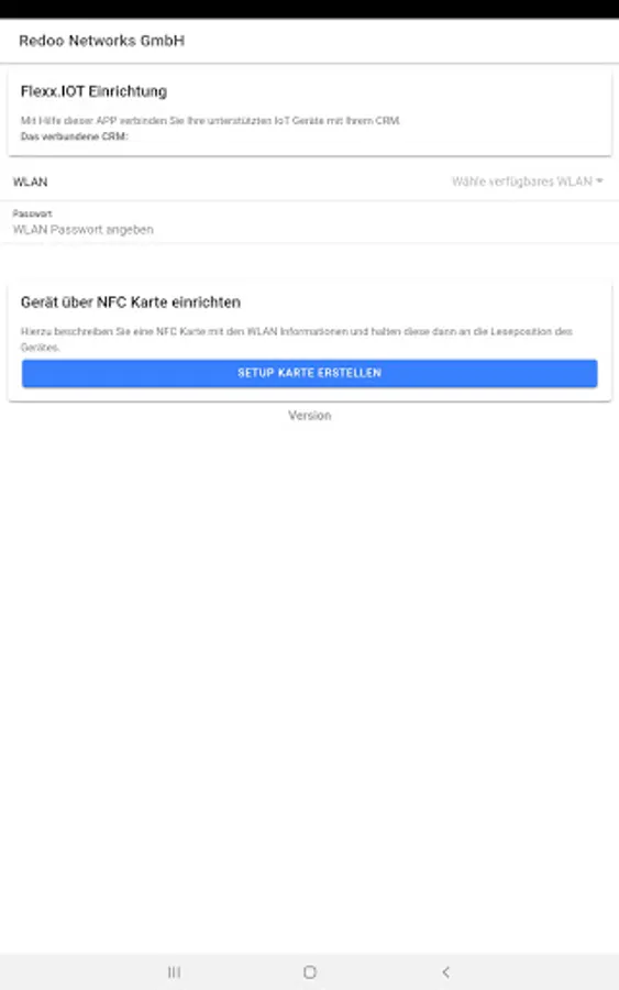 WLAN and CRM connection data can be transmitted to Redoo.IOT devices via this APP.