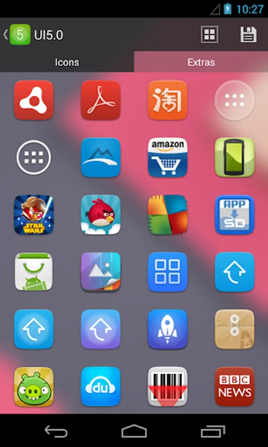 This app will help you save items from GO Launcher, ADW Launcher EX... themes like icons, wallpapers, docks... to SDCard easily, so you don't have to extract the apk file manually. After saving, you can uninstall those themes to save storage space.