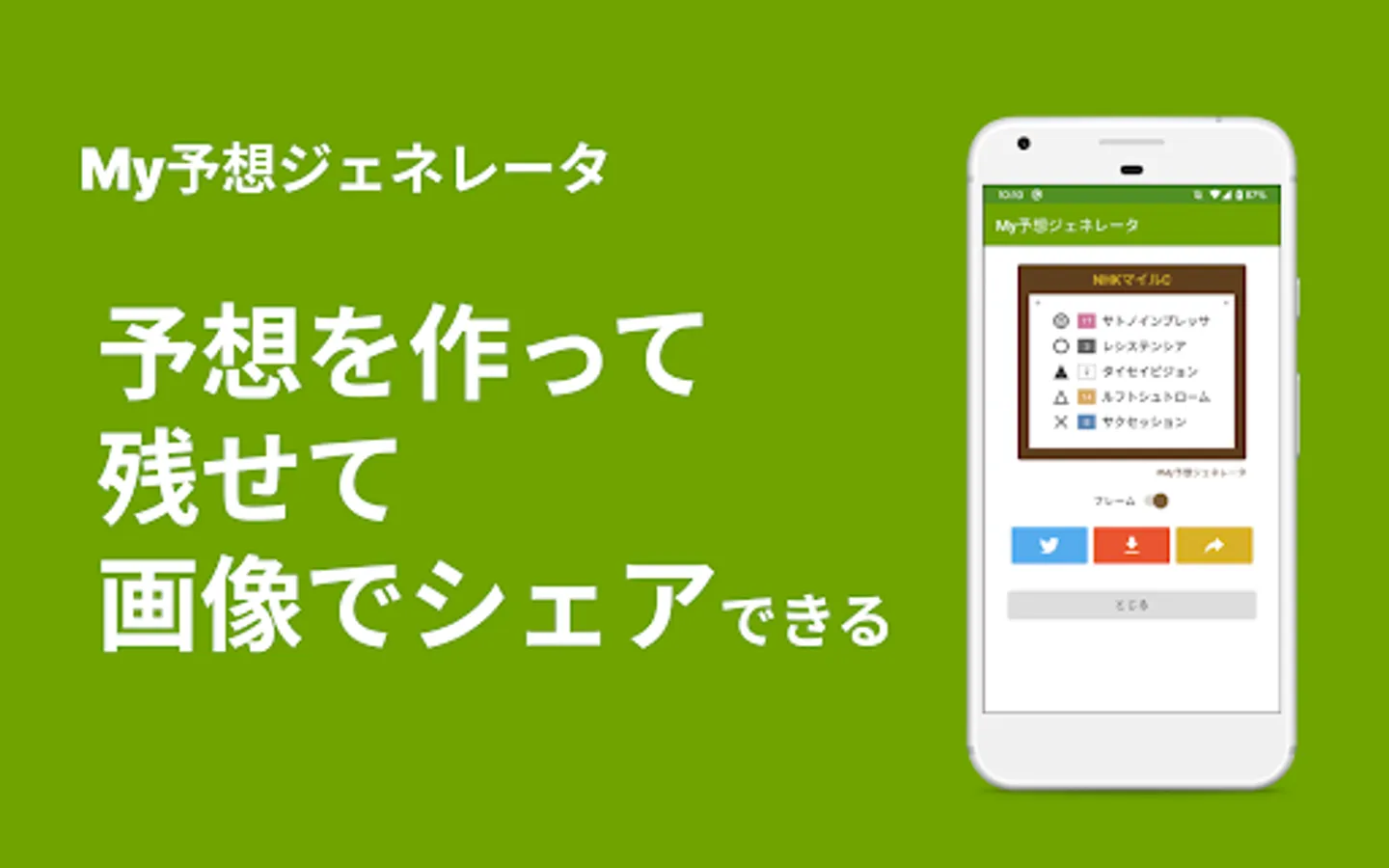 My prediction generator is an application that allows you to easily create your own predictions, save them, and share them as images on SNS.