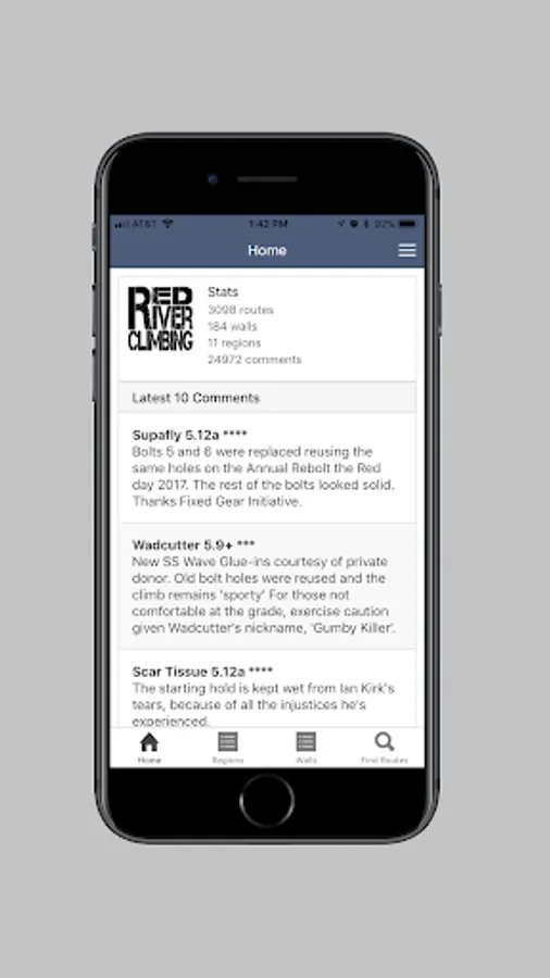 A climbing guidebook app based on the online guidebook at redriverclimbing.com.