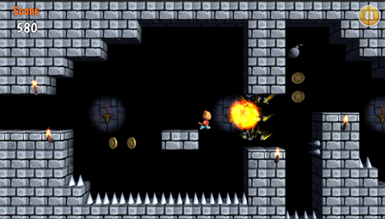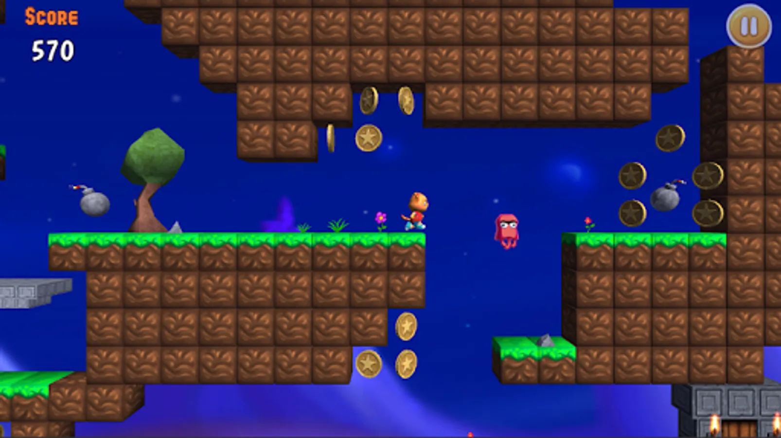 Bomber Cat Run is a challenge platform runner game you can play with one hand. There are just two buttons. Jump and stop. Bomber Cat Run plays as a side-scrolling, auto-runner platformer game. The player controls Jazz as he automatically runs from left to right, jumping on his own to clear small gaps or obstacles. The sorcerer kidnapped the owner, Luna. He has to save his owner from the sorcerer's hand. Jazz constantly runs forward, while you time your taps to pull off stylish jumps and moves to gather coins and reach the goal!