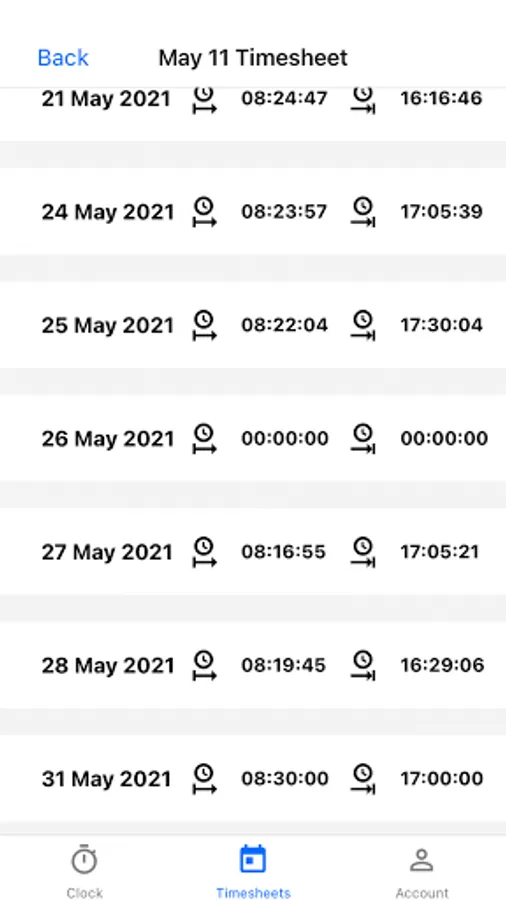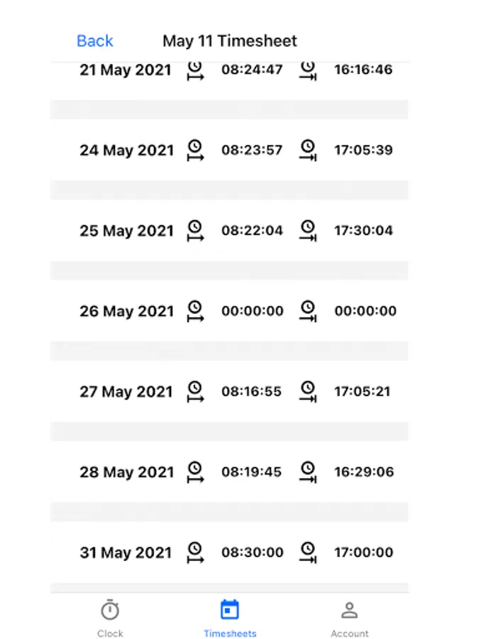 Users can view timesheets to check the times they have worked and can edit timesheets in circumstances where they have forgotten to clock in/out