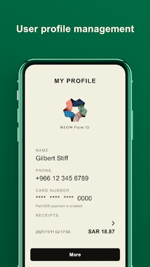 This phone app is a component of NEOM Palm ID payment solution, which can: