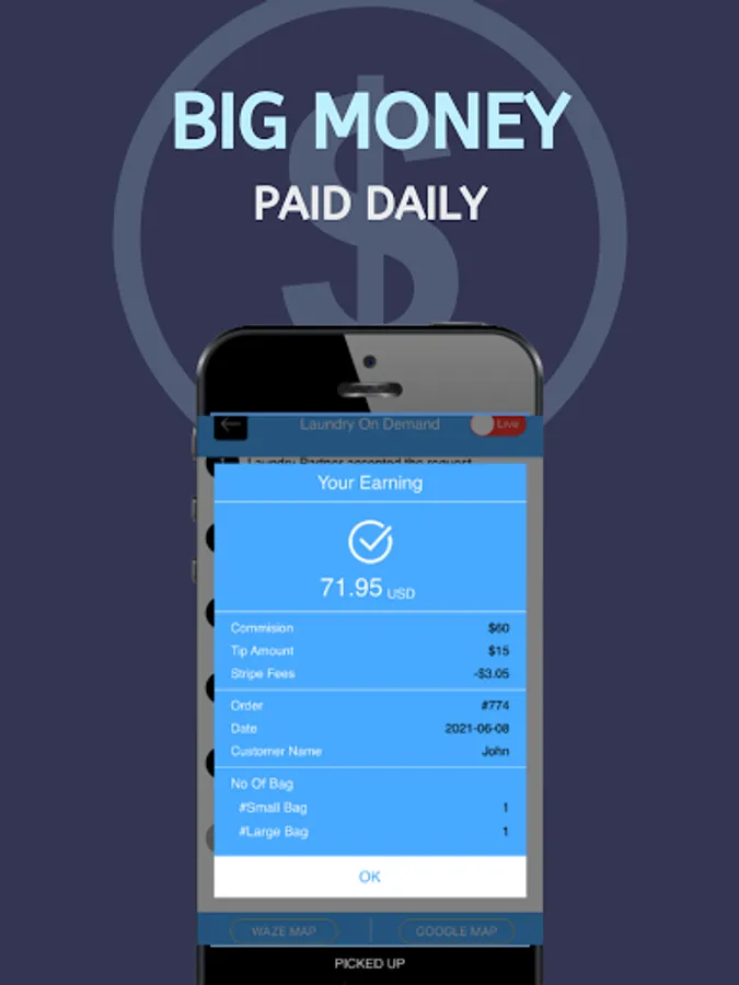 Laundry On Demand is a peer to peer laundry app connecting people who are tired of fighting the laundry monster with people who are background checked and ready to help. As a partner you can make great money and work your own schedule. Its 100% contactless too, so no more weirdos trying to get in your car.