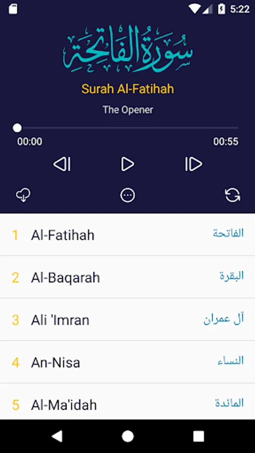 Whole Quran continues recitation, with the ability to choosing any surah you want to listen to.