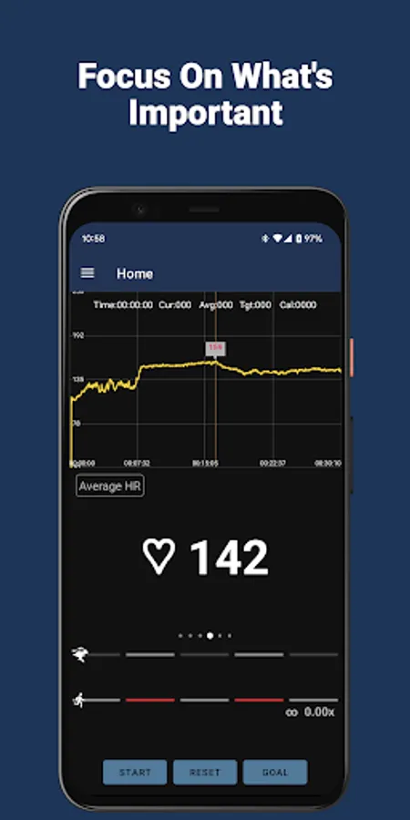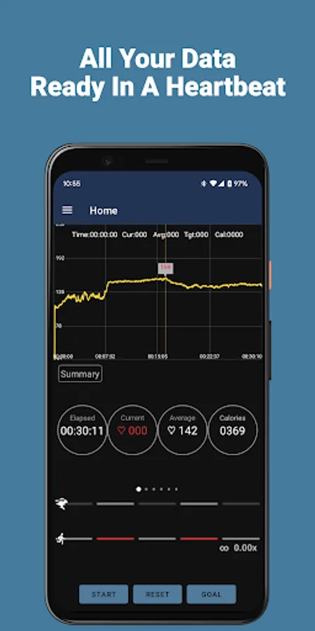 • Large heart rate graph shows your heart rate in real time, over the course of your workout