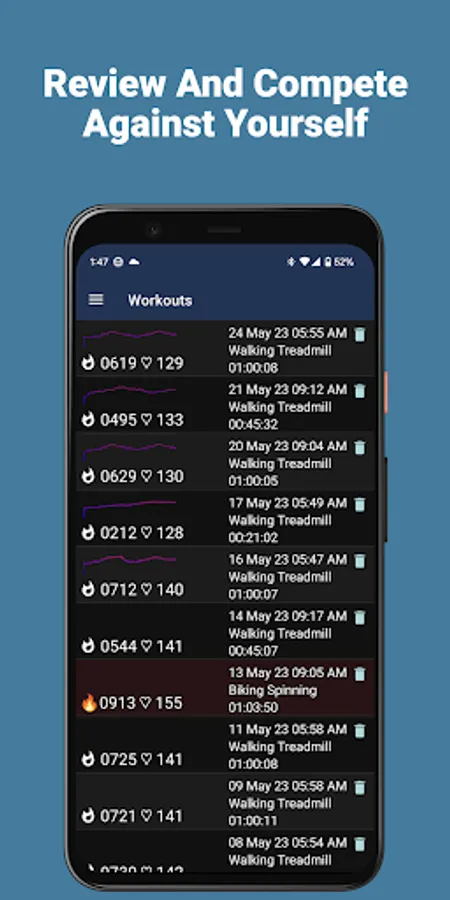 • Compete against past workouts to see if you can beat yourself