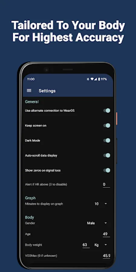 Note: You will need a WearOS device with an optical heart rate sensor, or a paired Bluetooth heart rate transmitter to use this app.