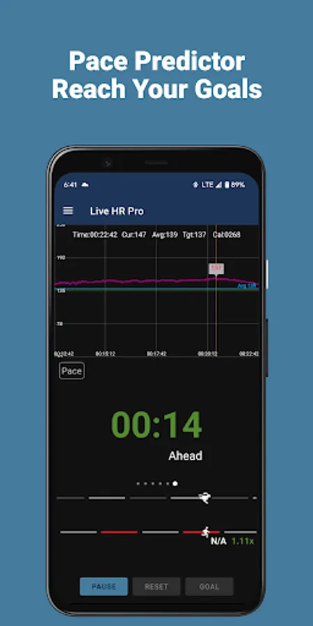 • Pace Indicator shows you in realtime if you'll reach your goal on time