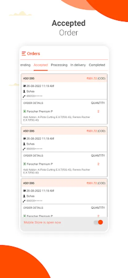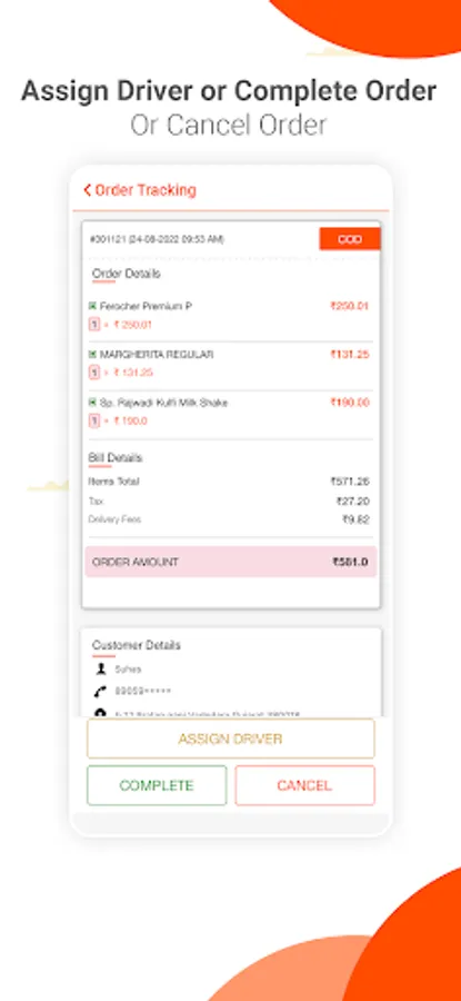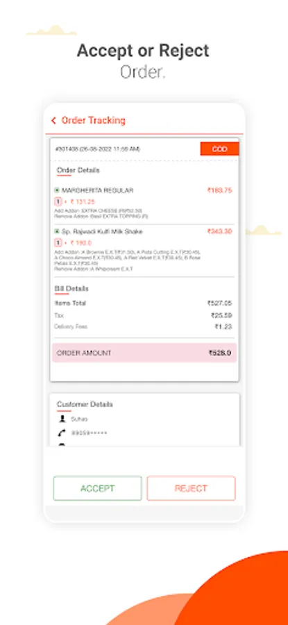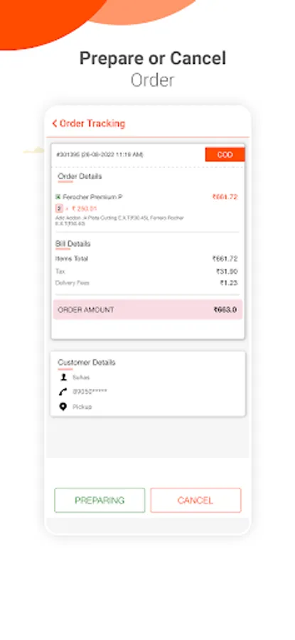 > Verify customer details like customer's name, address, and verified mobile number will be displayed before accepting orders.