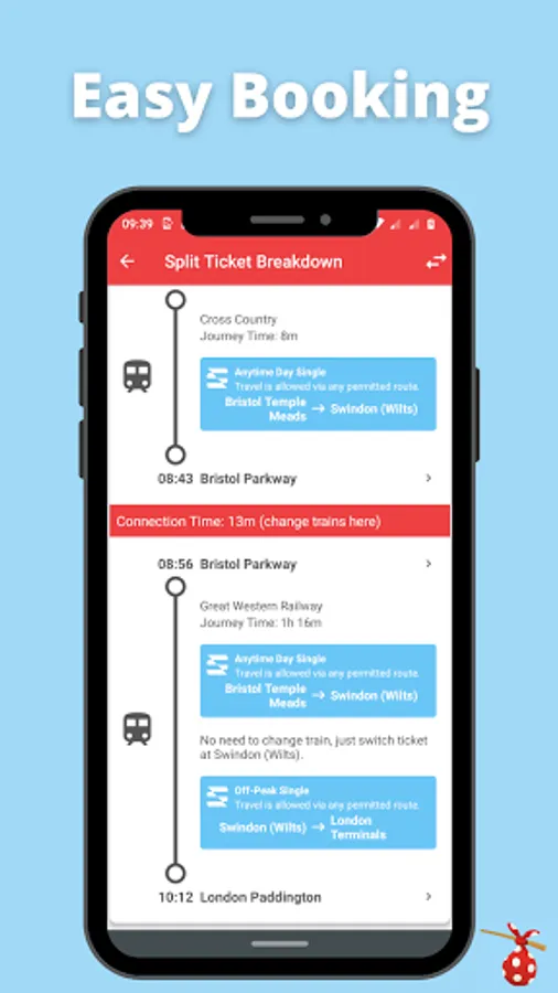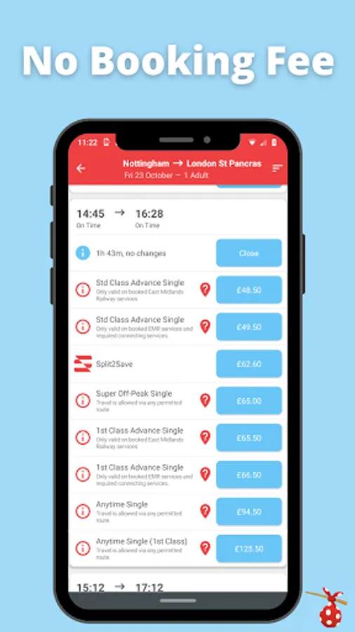 We cover all UK rail operators, so wherever you need to go and whenever you need to travel, simply book your feeless tickets through the app.