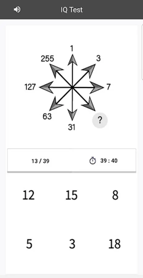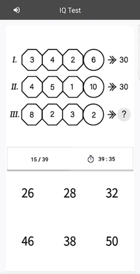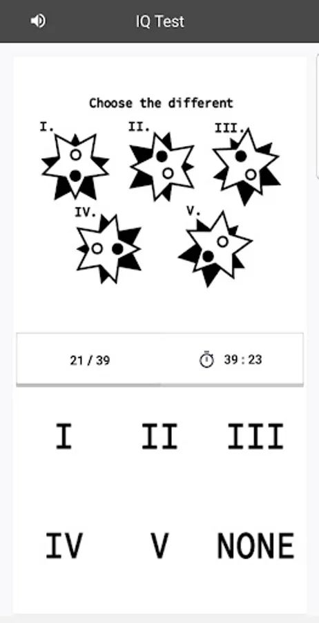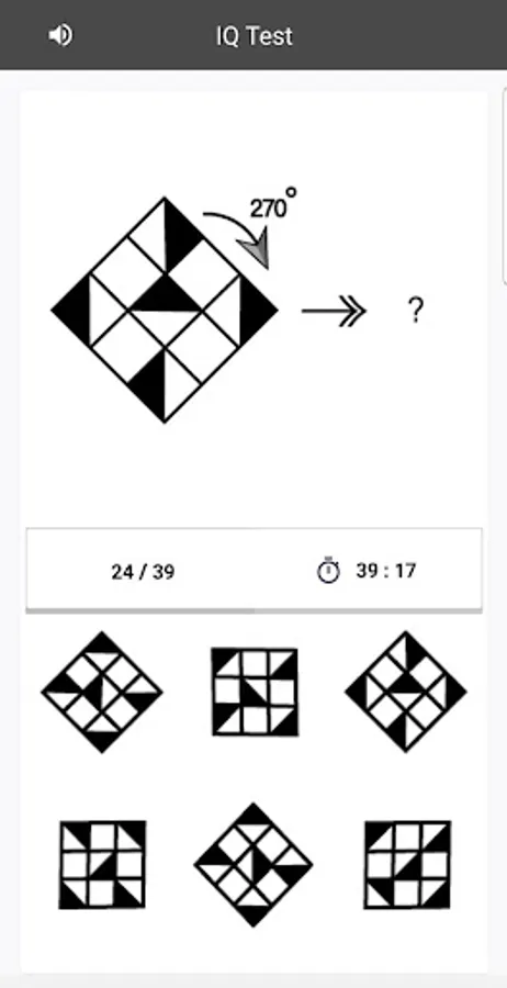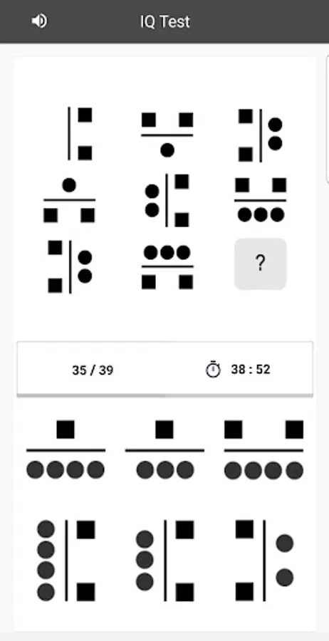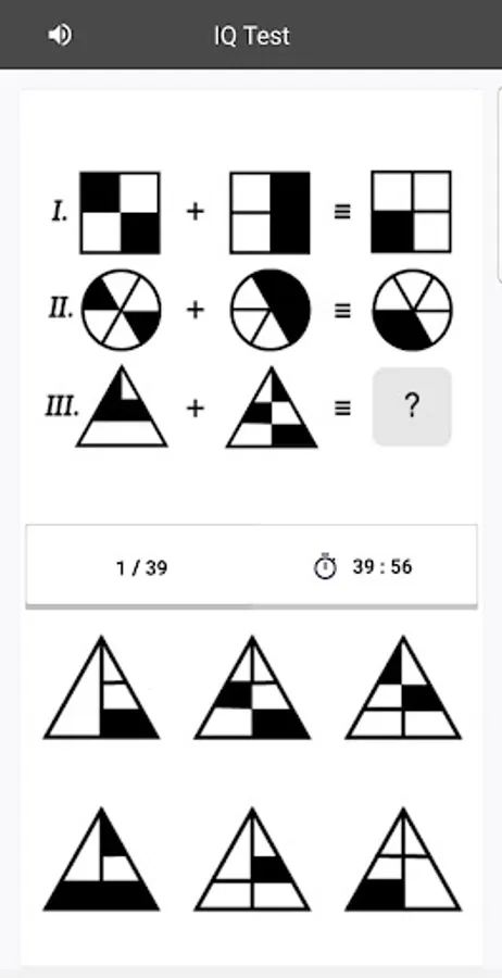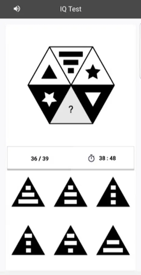 The IQ Test comprises of 39 questions which in turn are gradually more complex. Respondents choose geometric shapes to properly complete larger images.