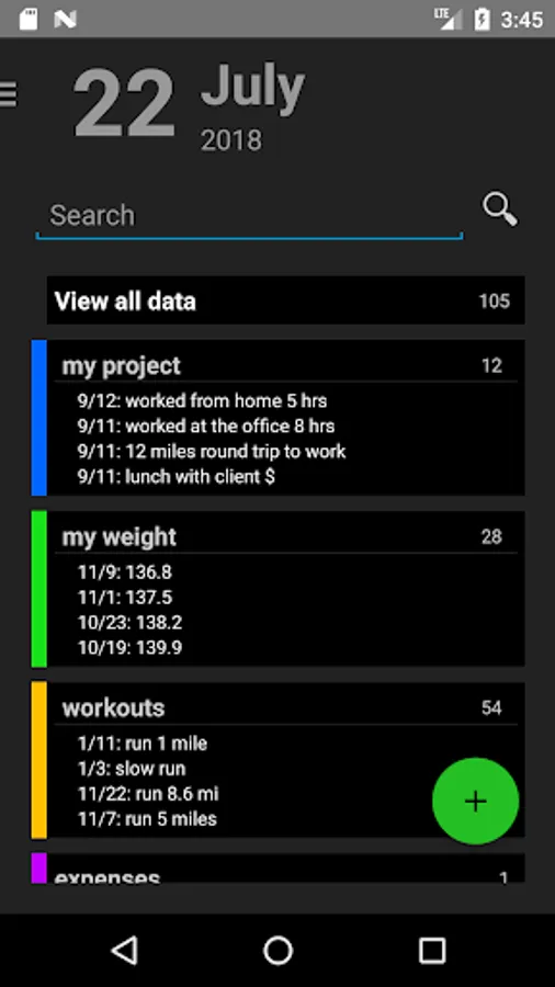 Organize items by labels, and view data in an easy-to-view list sorted by date. Tag a single item with multiple labels, and view data from one or more labels at a time. Discover the power of labels for organizing and viewing your data.