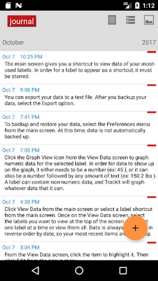 Keep Track can also be used as a journal or a notebook. Put as much text as you want in your entry, set a time for it if you want, and use the new 'expanded' view to view your entries.