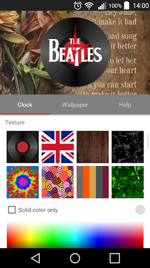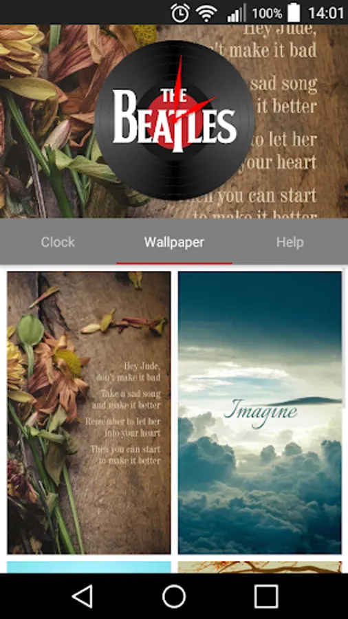 This app features The Beatles band inspired clock widget and wallpapers for your Android phone home screen.