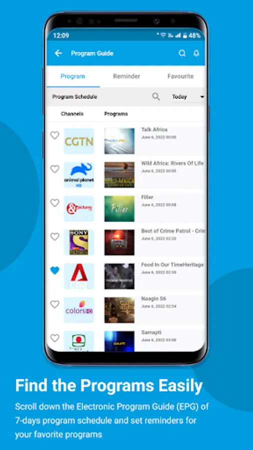 Go through the list of programs of your favorite channels and set your schedule or reminder like wise.