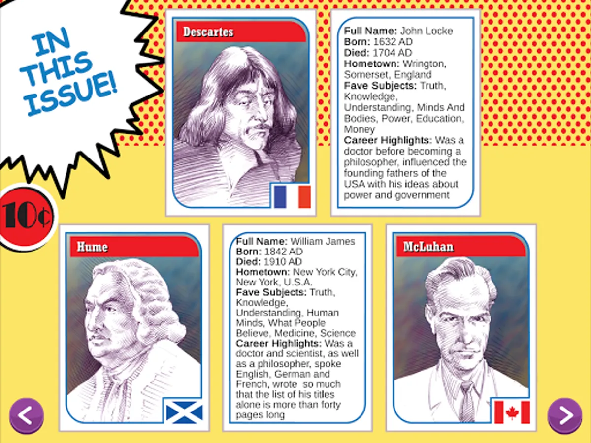 Join our charming and intrepid narrator, Sophia the Wise, as she thinks her way through some of the biggest (and coolest) questions human beings have ever asked. Meet famous philosophers, and try amazing ideas out for yourself with interactive activities.