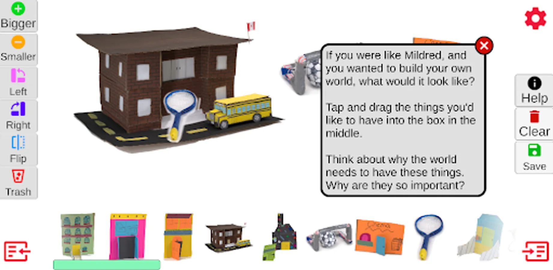 Mildred is seven-and-three-quarters, very perceptive, and she doesn’t always like what she finds out there in the world. With craft supplies in hand, and her head buzzing with visions of how things should be, she sets out to build a new one. Brimming with big ideas about what makes a perfect world, this sweet interactive story empowers children to think about what’s important, and to recognize and celebrate their role in creating it.