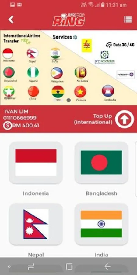 International Airtime Transfer (IAT) refers to the practice of reloading mobile prepaid airtime from one country to another country mobile prepaid number. REDtone Ring is offering real time international and local mobile top-up solution that enable our authorizes dealers to provide more value-added services to their potential customers.