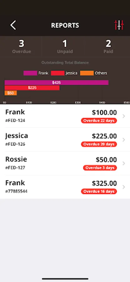 - Generate ready-to-send & print PDF reports of your outstanding invoices.