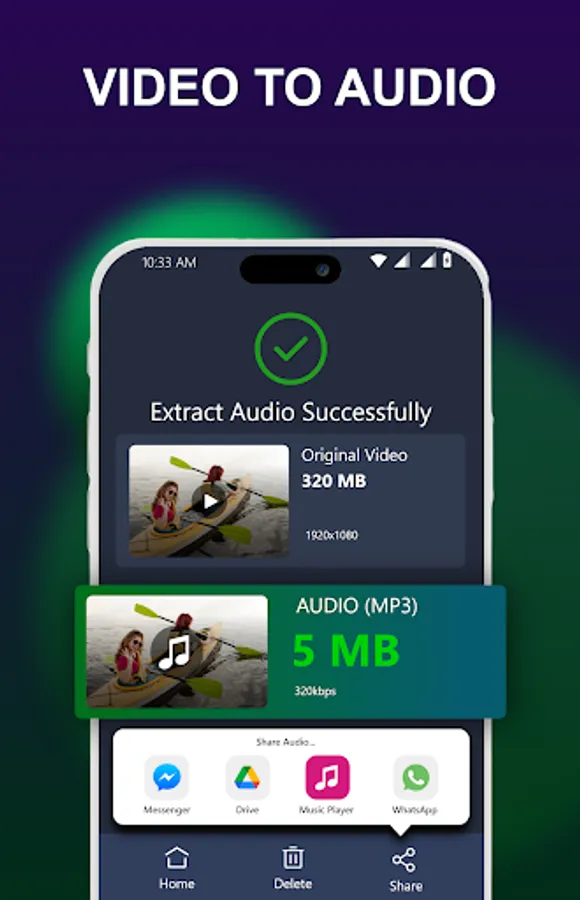 Want to save the audio from a video without keeping the full file? Use the built-in Mp3 Extractor from video to easily extract audio from video. This audio extractor feature is perfect for turning your favorite video soundtracks, lectures, or speeches into audio files you can listen to anytime. Extracting audio from video has never been simpler!