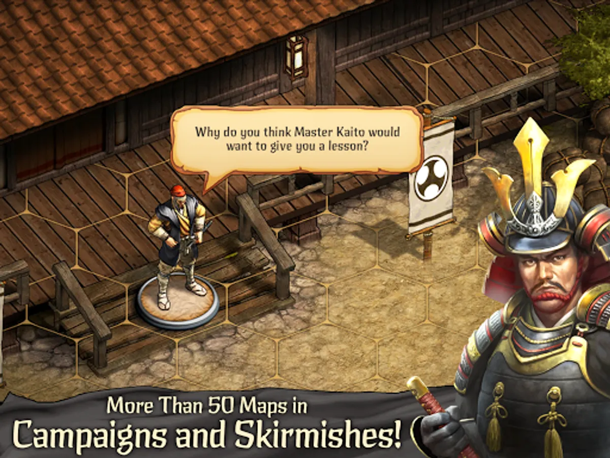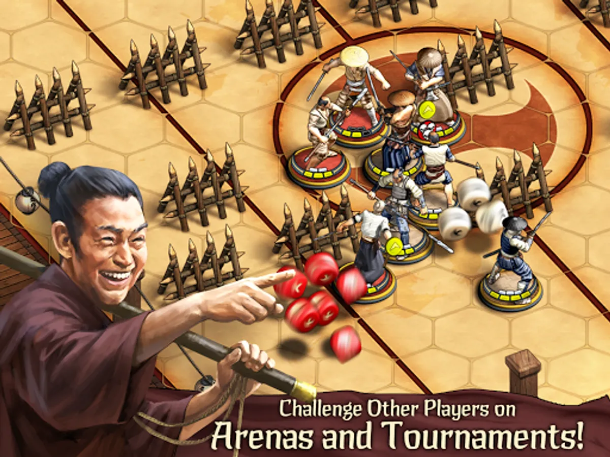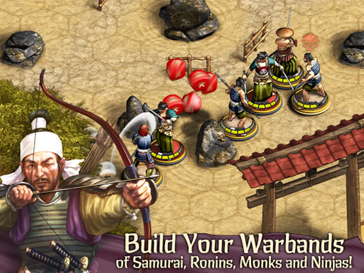 Warbands:Bushido is a miniatures board game online arena with cards, miniatures, dice (i.e. dice random involved) and beautiful terrains to fight on, with both multiplayer battles boardgamers are used to, and challenging single-player scenarios.