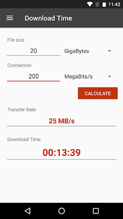 · Calculate download time for a file. Entering the size of a file, the connection speed, will show you the transfer rate and the time needed for its download.