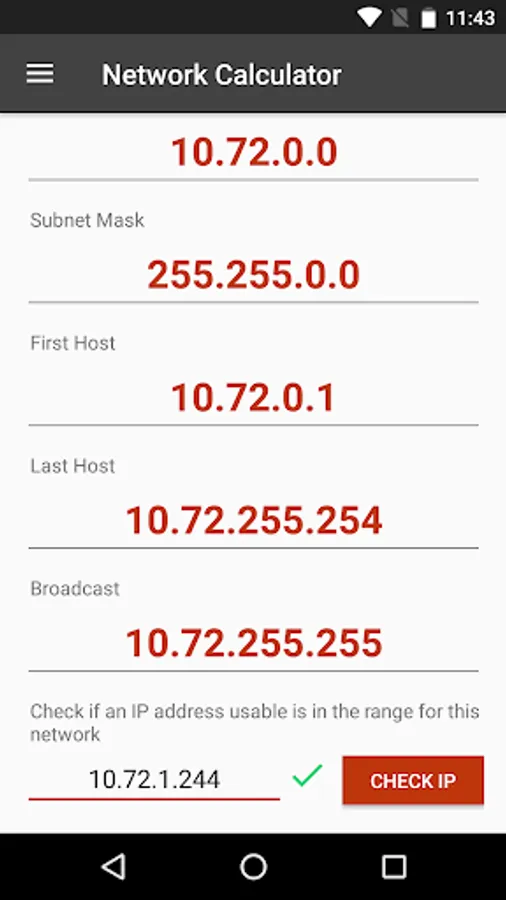 · Network Calculator. Calculate the number of hosts, network class, network address, netmask, first/last IP address, broadcast address per network. Check previous and next networks. Check if an IP address is in the range for a network.