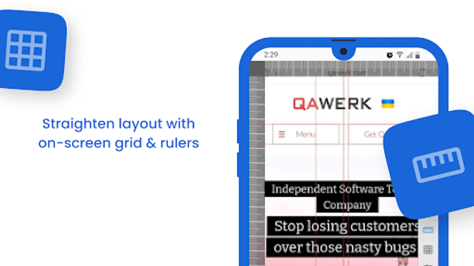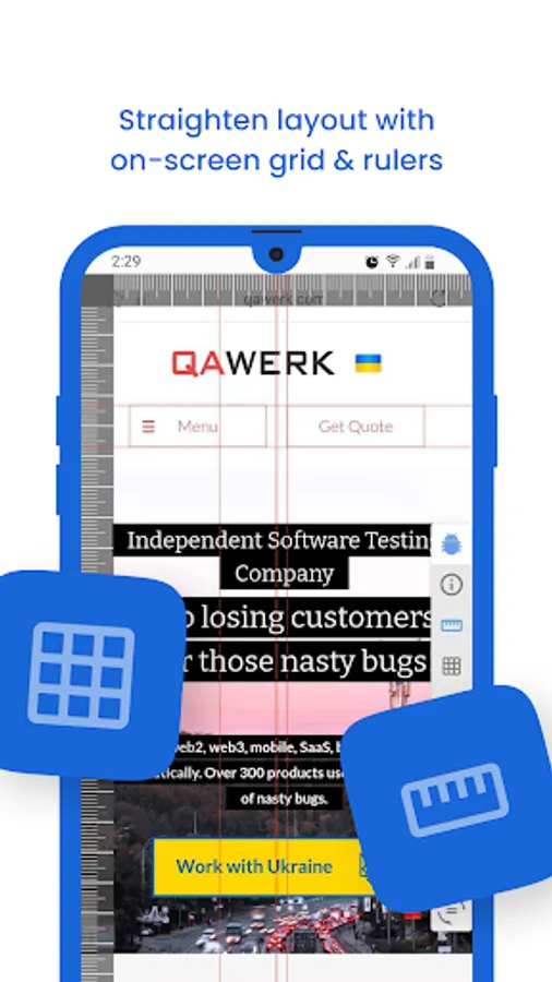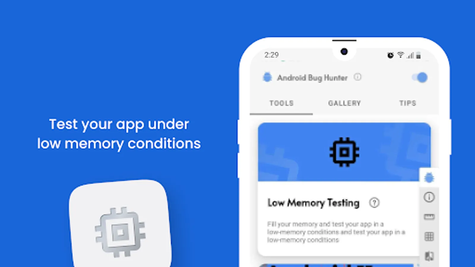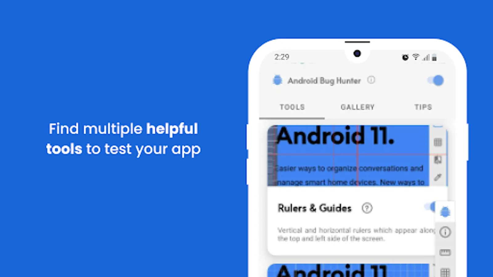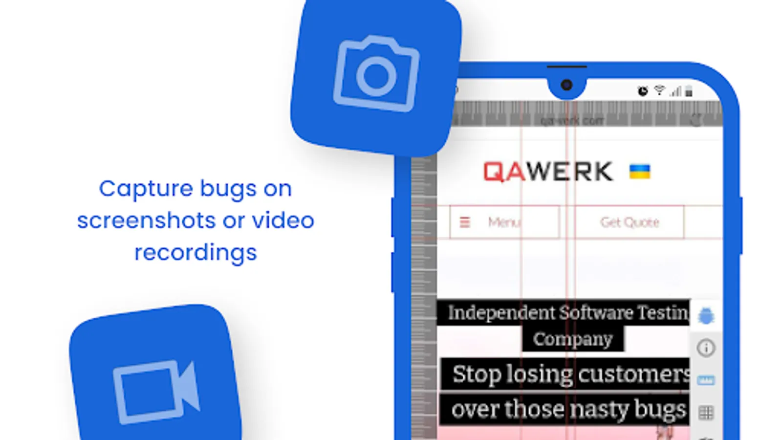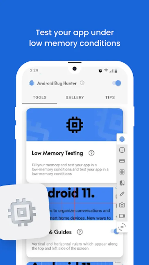 Perform low memory tests, align components, check colors, measure layouts, compare mockups, capture screenshots, record videos, and simplify bug reporting. Android Bug Hunter is an all-in-one powerful app testing companion.