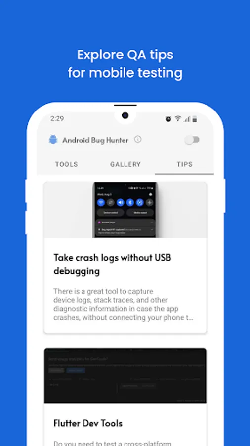 Level up your testing power with handpicked QA tips brought to you by QAwerk a professional testing agency helping businesses across North America, Europe, and Australia achieve software excellence since 2015. We regularly collect and share useful tools, tips, and approaches to mobile testing with you on the 'Tips' tab.