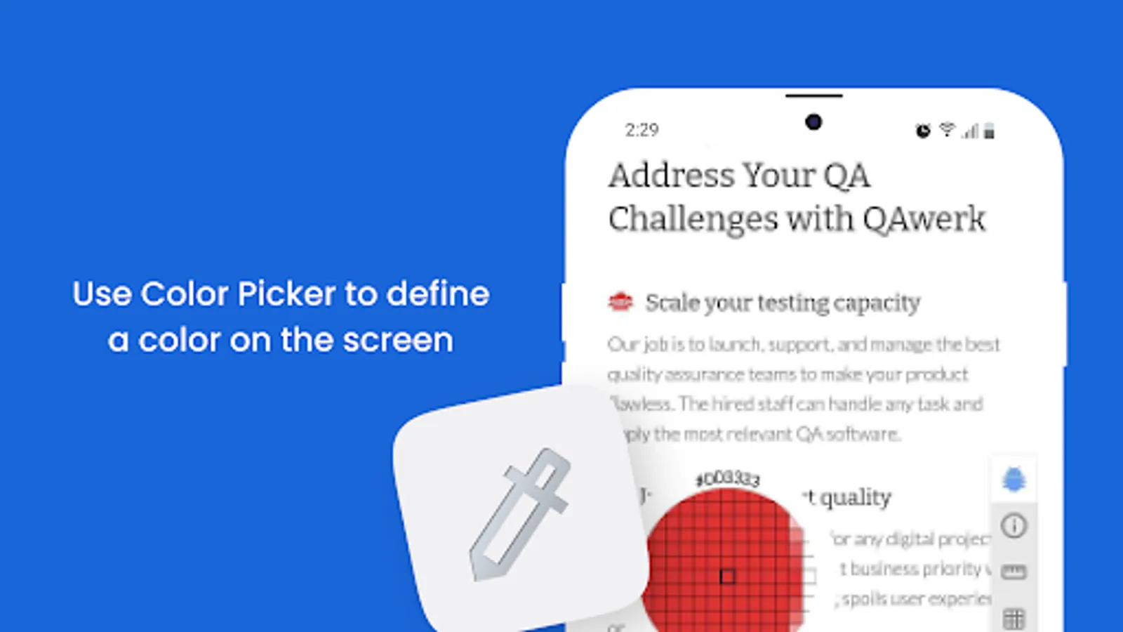 Leverage the color picker tool to explore an extensive range of colors and discover harmonious combinations using HEX color codes and RGB values. With a simple click on the magnifier, copy the desired color to your clipboard, streamlining your workflow.