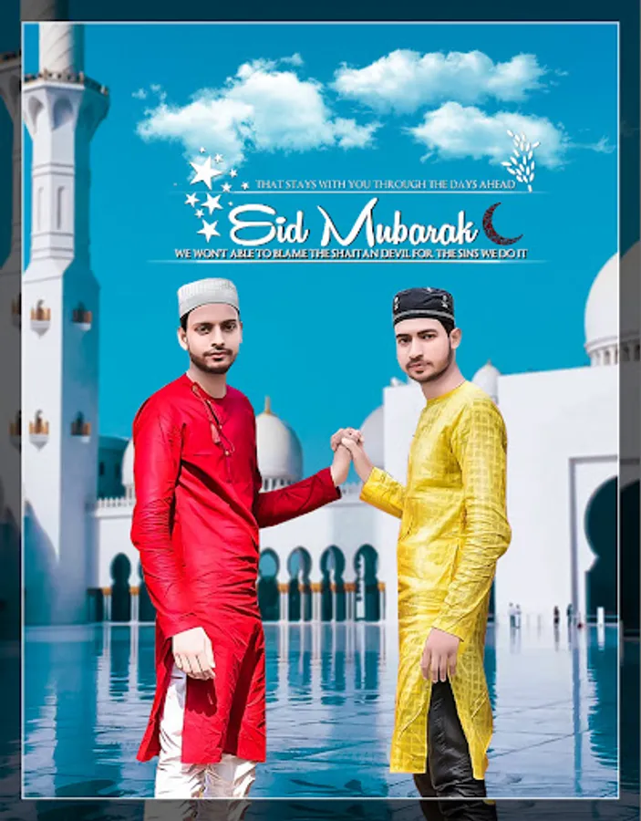 Eid Mubarak Photo Frame is a collection of beautiful Eid Mubarak frames , where you can set your Eid Mubarak photo in the frames. This is a unique opportunity to decorate your pics with the turquoise water of the bay and a beautiful sand. No matter where you are, you can use this best Eid Mubarak photo editor to wrap your holiday images and imagine.