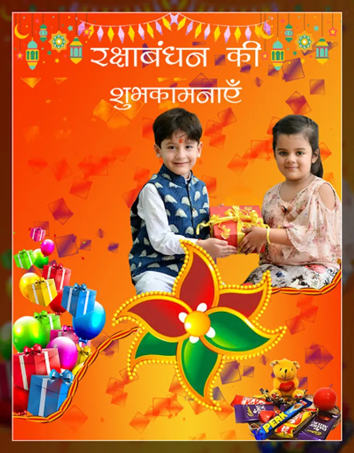 Make impressive looking "Rakhi photo Frame " by adjusting your images in Raksha Bandhan Frame.