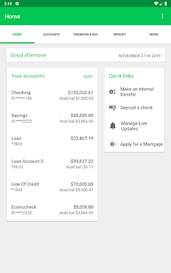 This app allows you to safely & securely manage your accounts from your mobile phone or tablet. Features that are just a tap away allow you to: