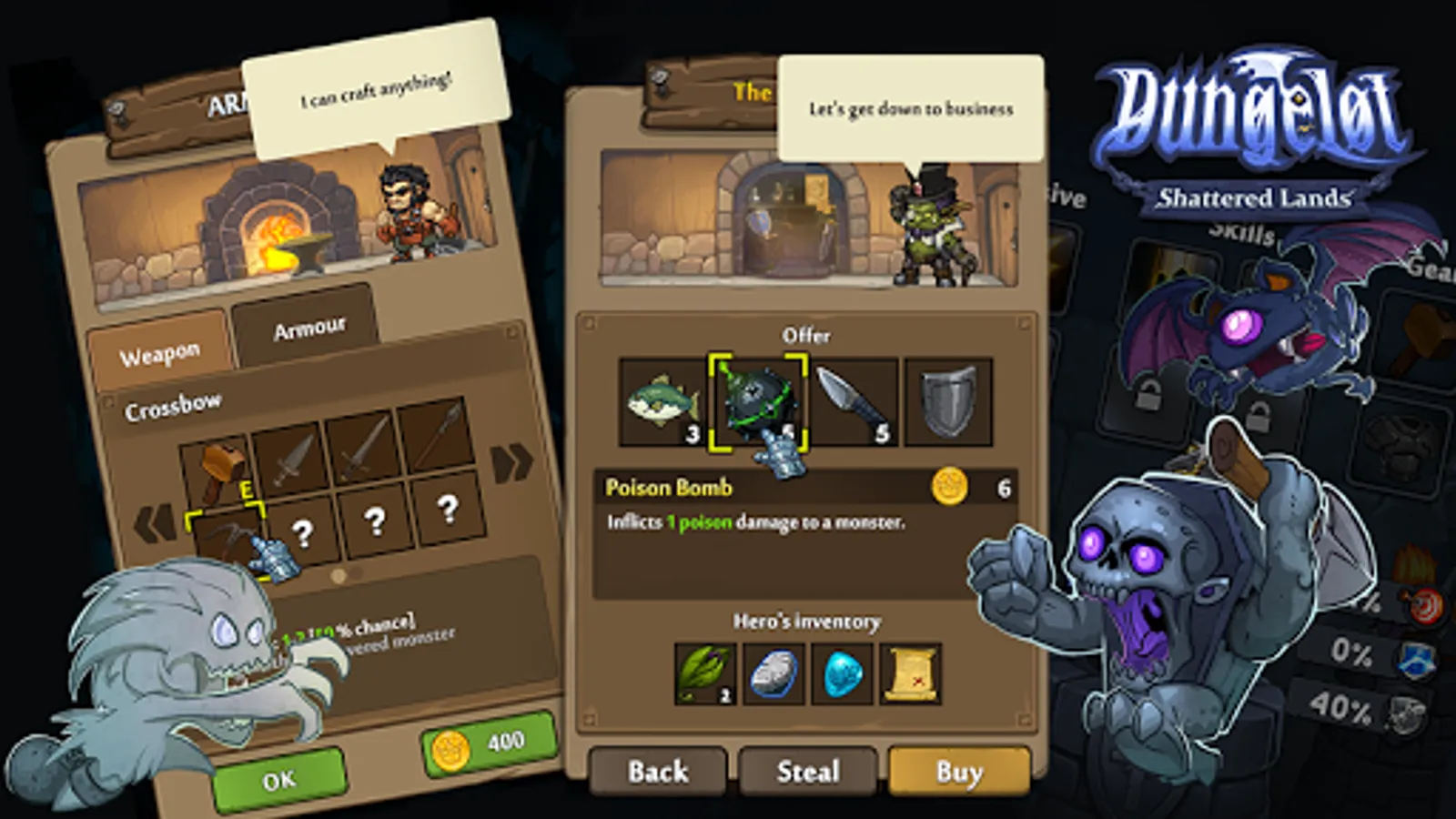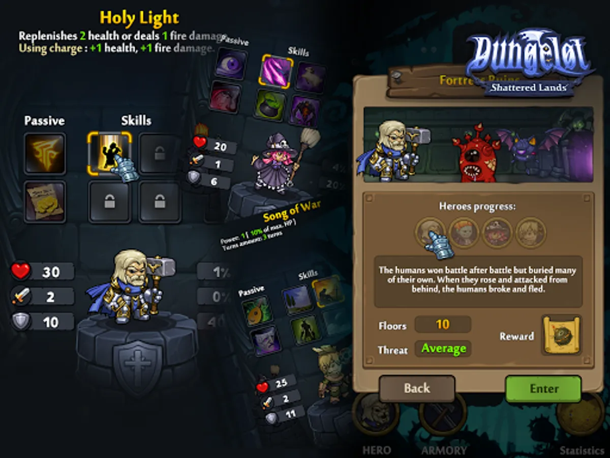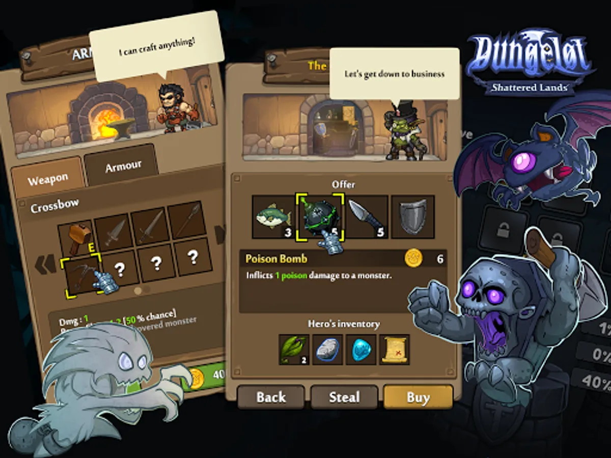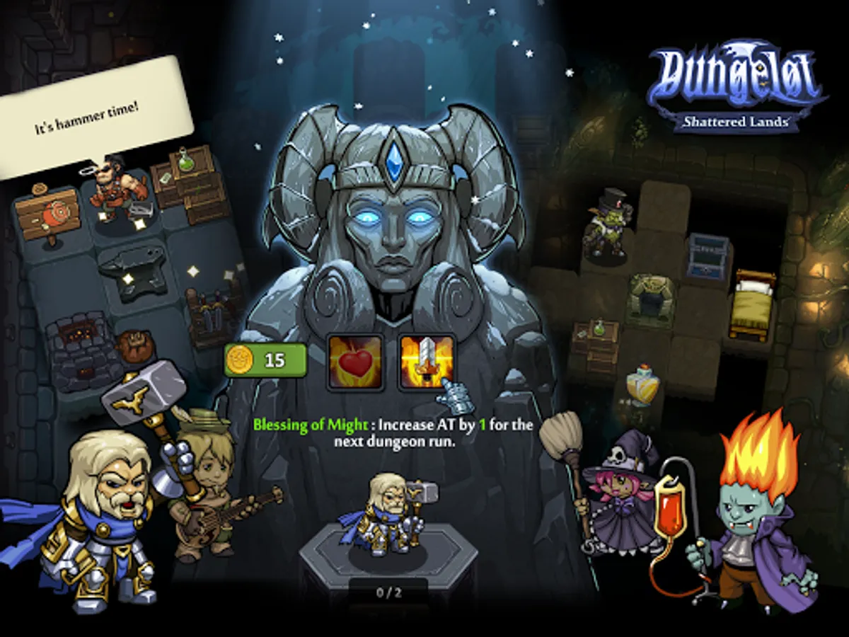 Dungelot: Shattered Lands features dozens of hours of content, with three worlds to explore, hundreds of items, spells and enemies, and epic boss battles that will burn your face off.