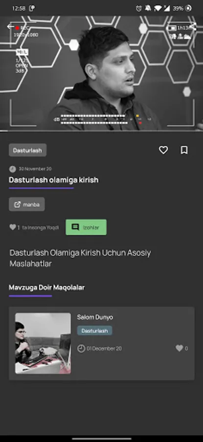 Bu dastur orqali siz texnologiya olamini cho'natigingizda olib yurasiz. Nafaqat It shu jumladan Har bir yo'nalishini qamragan xabar va maqolalarni o'qib boring. Dasturlash, Dasturlarni buzish haqida, Informatsion Texnologiyalar va hokazolar.