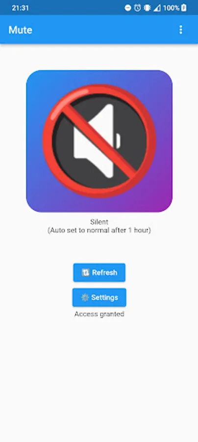 Mute is an app to mute your phone and set it back to normal settings after 1 hour.