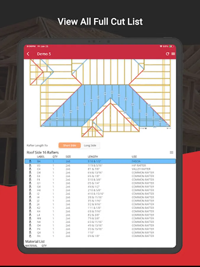 Full Roof Cut List: Receive a comprehensive cut list for every rafter.