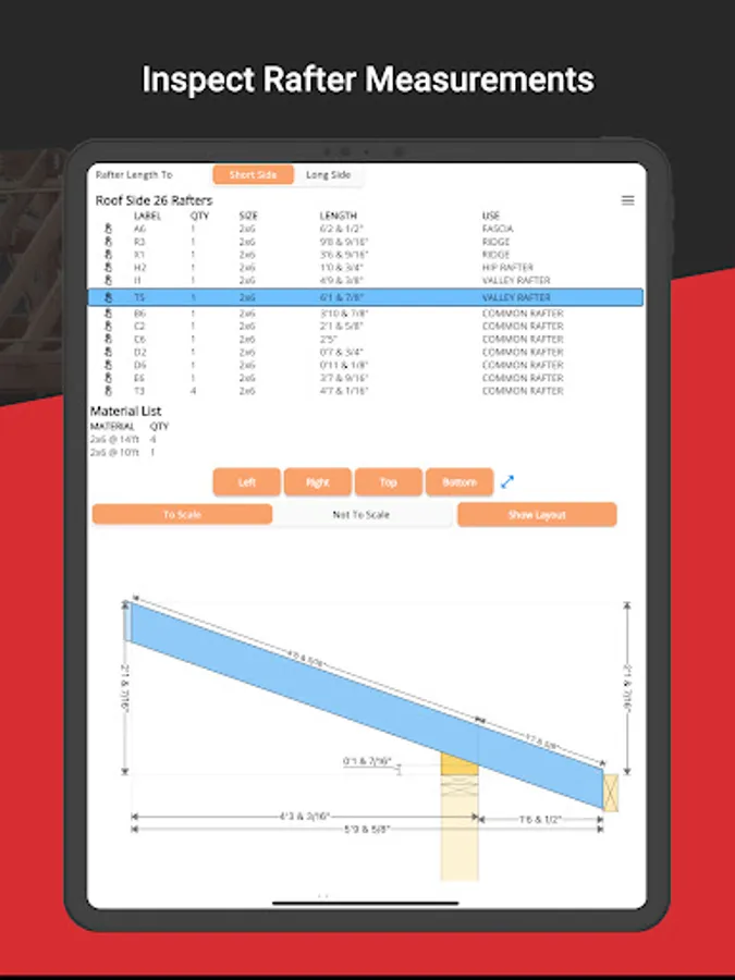 Comprehensive Rafter Measurements: Access detailed measurements for every rafter in your design.