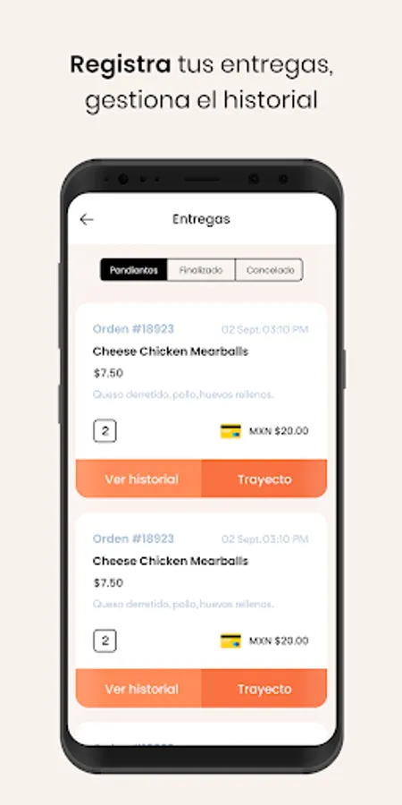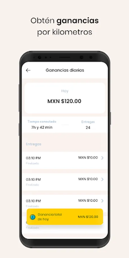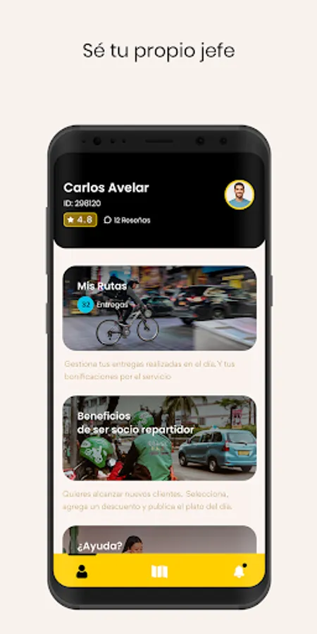 Register and download it to make deliveries by bicycle, motorcycle or Auto, the app allows you to receive delivery requests from the closest place to your current location and travel less distance to the restaurants, know the address of the restaurant and follow the map to get to your delivery point and generate income instantly, know your daily balance as well as a detailed history of deliveries, and get the necessary support to help you with your deliveries, receive information from the reviews that diners make about your service so that they always you have the opportunity to improve and generate more income.
