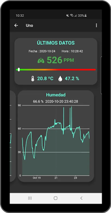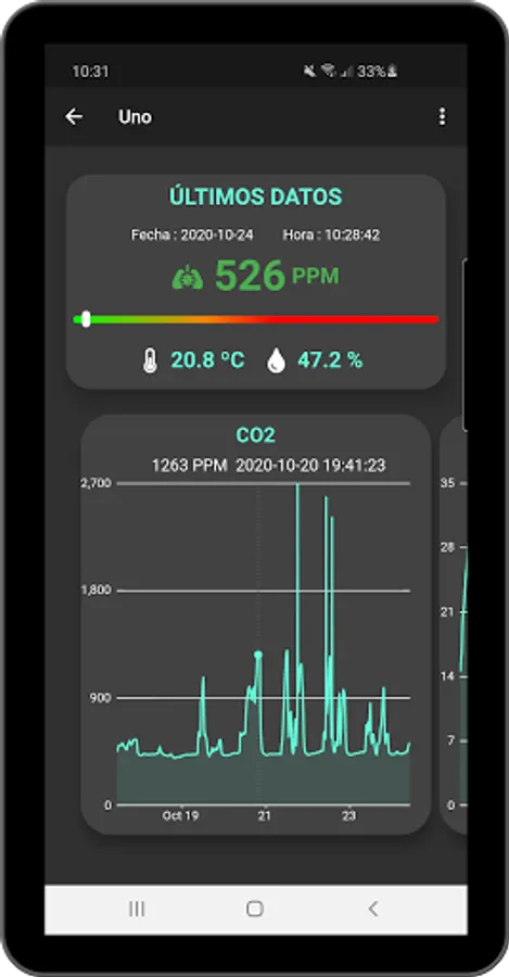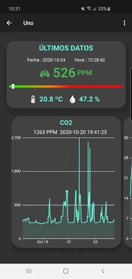 With the application, the data of these measurements are displayed and the ventilation conditions of the place where the sensor has been installed can be evaluated in real time.