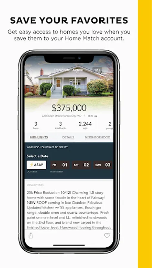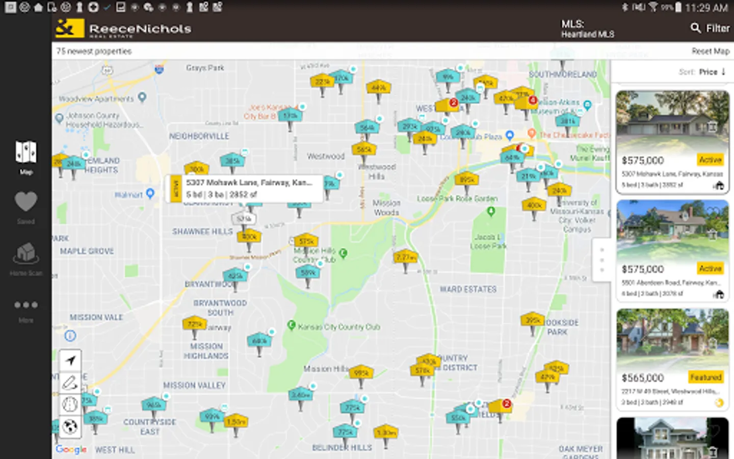 The ReeceNichols Home Search app provides you with access to listings in both Kansas and Missouri. Use the app to continue your home search from the website and see all of your saved activity. Once you are ready to see a house, use the agent search to connect with one of our real estate agents or use the mortgage calculator to get pre-approved.