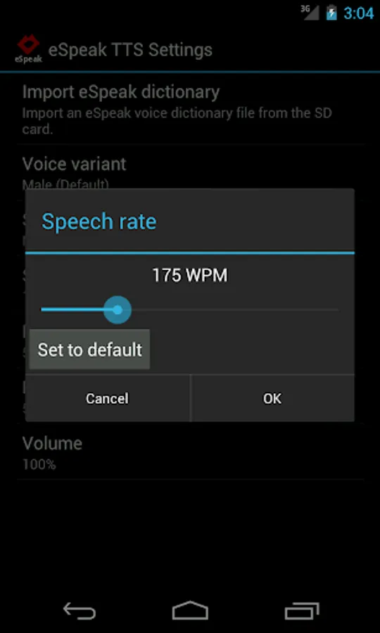 2. Speech rate and pitch are correctly handled, so eSpeak on Android sounds like it does on the desktop;