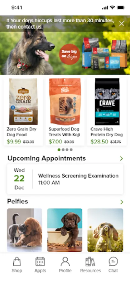 • Have an urgent question about your pet? Get answers from professionals with the in-app chat