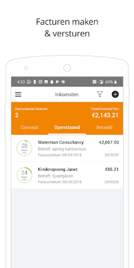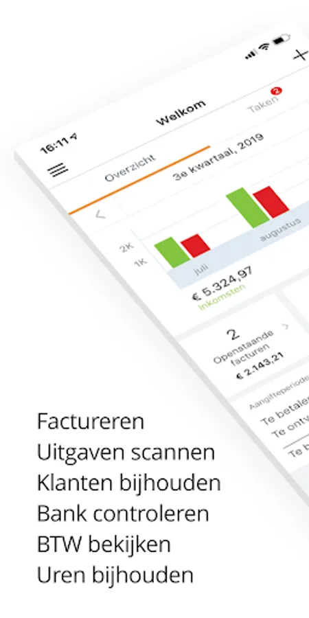 With this app you have access to the most important parts of your business administration, everywhere and anytime.