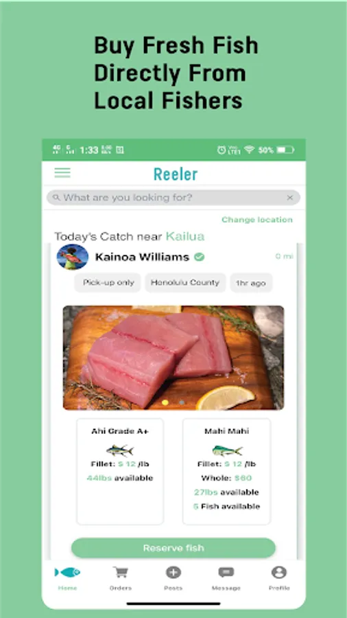 Get notified as soon as a fresh catch is posted by a fisherman in your area. Reserve your fish, get directions to your pickup location, then conveniently and securely pay in the app! You can also read and write reviews for each seller.