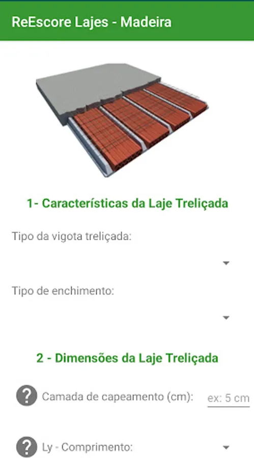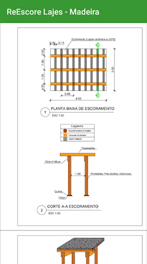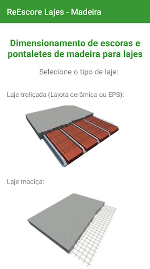 The ReScore Lajes comes from a research project of the Federal Institute of Sergipe - Campus Estância, as well as from a TCC (course conclusion work). ReEscore Slabs was developed to design temporary wooden scaffolding structures for shoring and solid or lattice slabs, based on technical standards ABNT NBR 15696 - Formwork and shoring for concrete structures and ABNT NBR 7190 - Design of wooden structures.