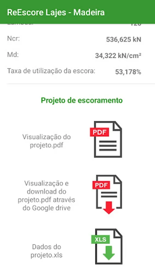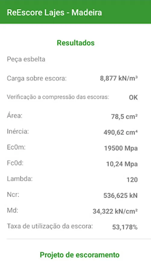 The application was designed to capture user input regarding the characteristics of the shoring and the structural element. Thus, the application is able to carry out the checks contained in the two standards and subsequently dimension the struts as to the load of use and weight of the structural elements, at a safety margin of 15% and with complete reliability and reference to normative standards . And from there, deliver a shoring project containing the quantity and position of the struts, rate of use of the struts in terms of loading, a spreadsheet with the parameters necessary for its execution, and all this together with an easy-to-use and accessible layout by any user with minimal engineering knowledge.