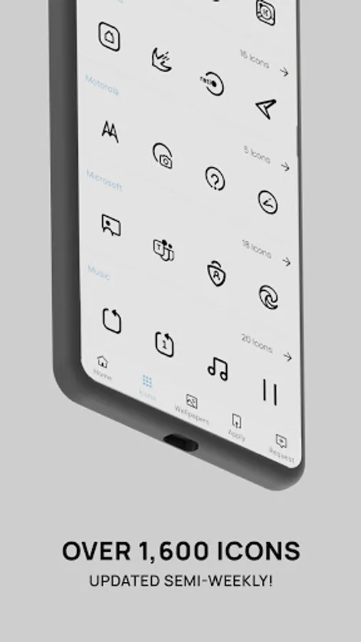 A: Tap the last icon in the bottom navigation menu that says "Request" to open the icon request page. Select the icons you want to request, or tap the select all icons to request all icons. Once selected, tap the big buttons that says "Request Icon" and send it through your email app.