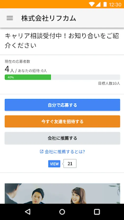 "Refcome" is an application that invites friends and acquaintances who want to work together and succeeds in recruiting referrals for all employees.